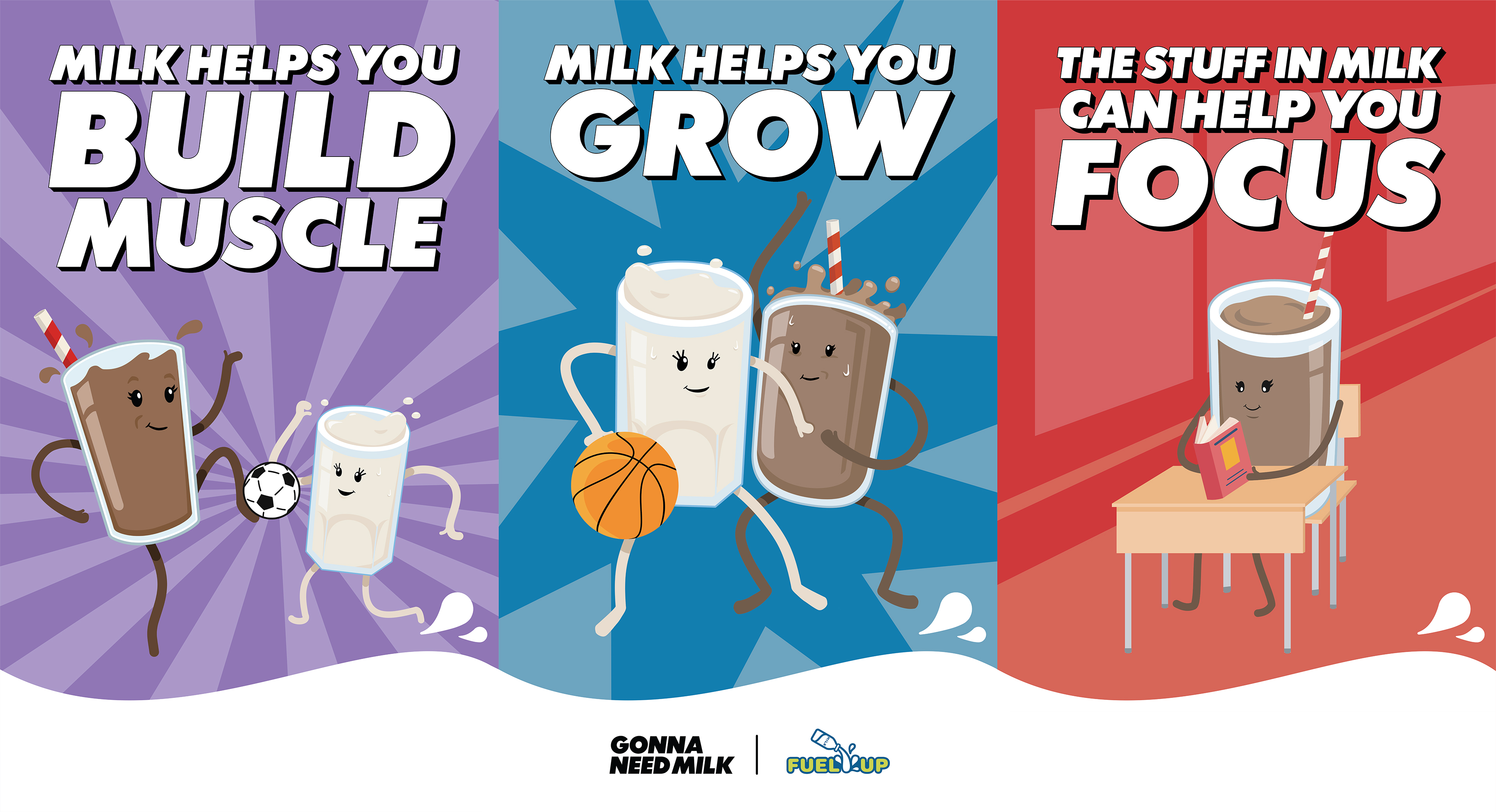 Highlight milk’s role in growth, focus, and wellness with three student-friendly designs—ready to print and display in your cafeteria.